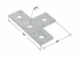 Flat Plate Fitting, 4 Hole Tee Fitting 90x138mm Galv